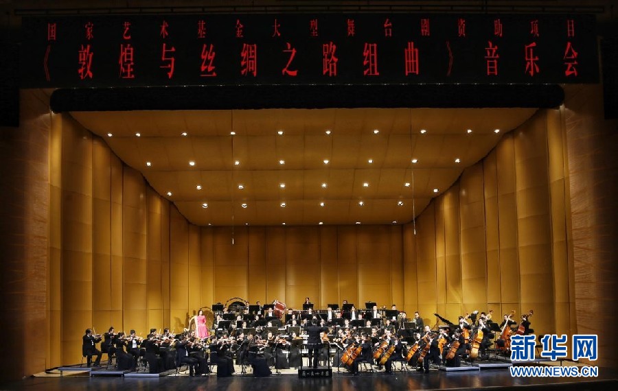 《敦煌與絲綢之路組曲》由俄羅斯作曲家布列沙克·維克多·瓦西里耶維奇創作,分為《朝圣敦煌》《祝福綠洲》《莫高圣禮》《藝術圣殿》《絲路情歌》《古道回聲》《海上絲路》《力與速度》和《和平萬歲》九個樂章。組曲追溯古代絲綢之路的繁榮昌盛,歌頌“一帶一路”倡議背景下今日絲綢之路的和平崛起,暢想未來絲綢之路的輝煌盛景。新華網發(薛強 攝)