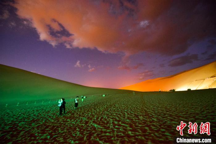 圖為游客觀賞大漠夜景。 王斌銀 攝