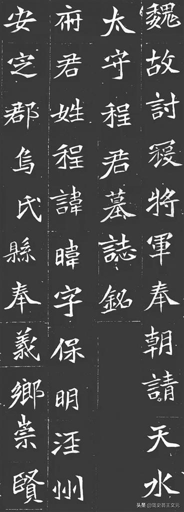 仔細(xì)一讀,發(fā)現(xiàn)了不尋常。第一行內(nèi)容就吸引了我的注意力:“魏故討寇將軍奉朝請?zhí)焖爻叹怪俱?rdquo;,原來是位天水太守,這可少見,能補(bǔ)充史料的不足。繼續(xù)下看,后面兩行,更加有意思了:府君姓程,諱暐,字保明,涇州安定郡烏氏縣奉義鄉(xiāng)崇賢里人也。這人是甘肅人啊!