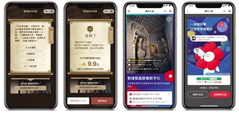 “云游敦煌”的“聲動畫語”讓壁畫“活”了起來,用戶可以通過觸點的方式進入到不同的篇章中,通過動畫欣賞敦煌壁畫中晚唐時期的生活場景,并獲得與當時社會民俗、服飾等相關的文化知識。觀看完動畫后,用戶還可以通過參與文化問答挑戰,為中國敦煌石窟保護基金會募集善款。答對題目越多,募集到的善款也將隨之增多??铐棇⒂沈v訊公益慈善基金會直接出資,并全部用于敦煌莫高窟第427窟、145窟、138窟的數字化保護工程。通過這種方式讓每一位參與的用戶,都能夠用自己的知識為石窟數字化保護助力,成為新時代的敦煌“數字供養人”。