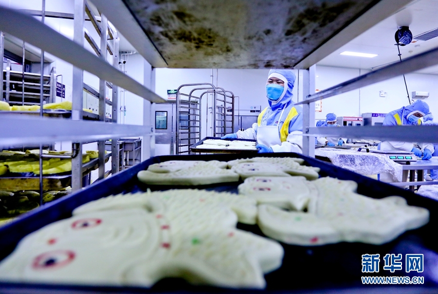 9月9日,甘肅省張掖市甘州區一月餅加工車間內,工作人員正忙碌制作中秋“土月餅”。新華網發 (王將 攝)