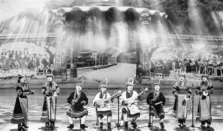 “白馬山寨的火把點(diǎn)亮,土琵琶彈出心中歡暢……”第四篇章《盛世歡歌》由文縣土琵琶彈唱、藏族鷹笛、格薩爾史詩(shī)說唱、瑪曲龍頭琴?gòu)棾冉M成,集中展示了我省豐富多彩的民族文化特色。其中,土琵琶彈唱起源于漢代,發(fā)展于唐、宋、元時(shí)期。琵琶彈唱蘊(yùn)藏著大量獨(dú)特的音樂元素,是民族文化中獨(dú)有的瑰寶。2017年,文縣土琵琶彈唱被列入第四批省級(jí)非遺名錄。