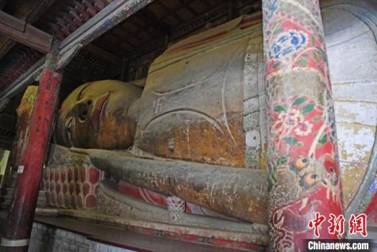 12月中旬,甘肅張掖大佛寺中重要文物的“數字孿生”打造工作已進入新階段。圖為木胎泥塑臥佛。 楊艷敏 攝