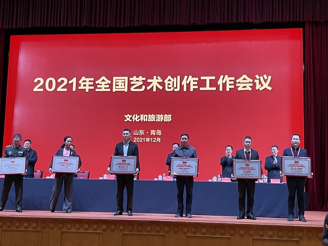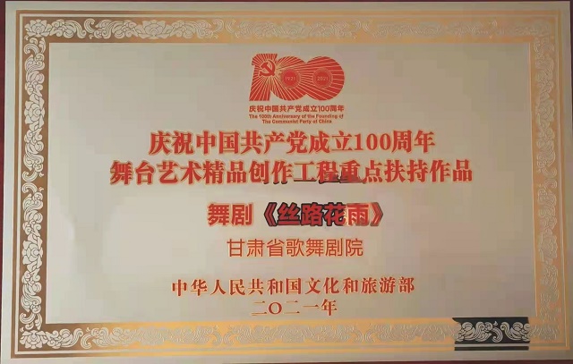 中國甘肅網(wǎng)12月19日訊 12月18日,文化和旅游部在山東省青島市召開的“2021年全國藝術(shù)創(chuàng)作工作會議”上,發(fā)布了“慶祝中國共產(chǎn)黨成立100周年舞臺藝術(shù)精品創(chuàng)作工程”入選名單,頒發(fā)了“慶祝中國共產(chǎn)黨成立100周年舞臺藝術(shù)精品創(chuàng)作工程獎(jiǎng)牌”。甘肅省文化和旅游廳遴選推薦的舞劇《絲路花雨》《大夢敦煌》《彩虹之路》、隴劇《官鵝情歌》、小品《你笑起來真好看》等5部舞臺藝術(shù)精品,經(jīng)文旅部評審正式入選“舞臺藝術(shù)精品創(chuàng)作工程重點(diǎn)扶持作品”。甘肅省歌舞劇院創(chuàng)排的舞劇《絲路花雨》作為12家“百年百部”工程受獎(jiǎng)單位在全國藝術(shù)創(chuàng)作工作會議上接受獎(jiǎng)牌和榮譽(yù)證書,甘肅省文旅廳、山東省文旅廳等參會代表12家領(lǐng)獎(jiǎng)單位上臺領(lǐng)獎(jiǎng),充分展現(xiàn)了文旅部對甘肅省入選作品質(zhì)量及組織工作的高度肯定。