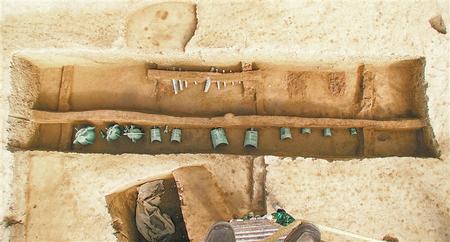 禮縣大堡子山遺址秦代銅編鐘發掘現場