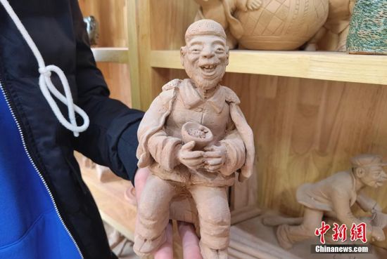 圖為泥塑作品展現人們娛樂場景。 劉玉桃 攝