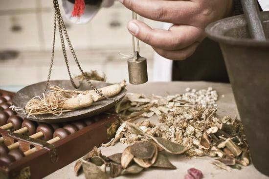 有時趁他空閑, 我便去他的中藥鋪里坐坐,最喜歡聞他藥鋪里散發(fā)的那種清苦的藥草香。而看他抓藥的過程,更是一種視覺享受。每次他先把藥方仔細瀏覽一遍,然后才開始抓藥。值得一提的是,他瞄一眼藥方,就能快速找到相應的中藥匣子。對于用量不太精確的藥物,他僅憑手抓,基本準確。對于用量必須精準的藥物,他會那樣耐心地放進一個叫“戥子”的小秤里稱一稱,添一點或減一點,然后將藥倒入柜臺上鋪好的麻色毛邊紙里,橫折一下,豎折一下,熟練地包起來,用細細的麻繩扎緊,反復交代幾句,遞給病人。看著這行云流水的動作,患者的疼痛仿佛也一下減輕了許多。