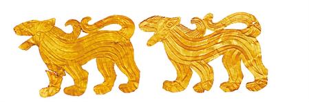 虎噬羊紋金飾片/戰國 甘肅省博物館藏