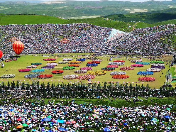 2019年7月30日,在甘肅甘南舉辦的“一會一節”吸引近20萬名當地群眾和游客觀看。甘肅省文旅廳供圖
