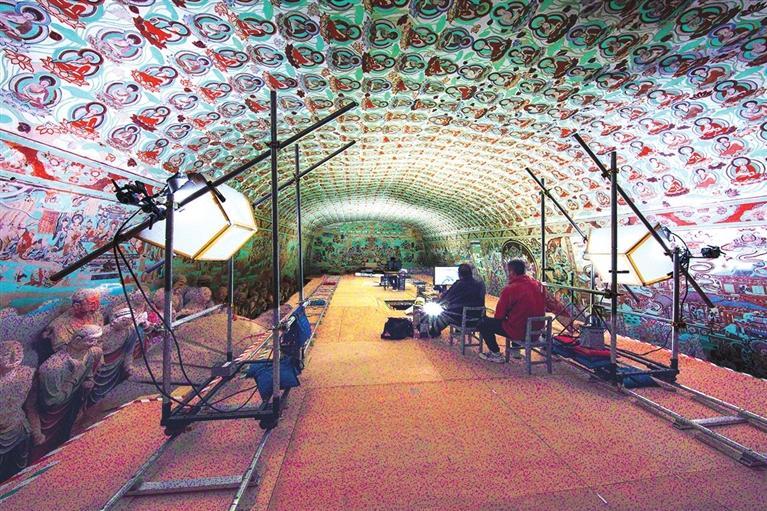 莫高窟第148窟壁畫數字化采集現場。