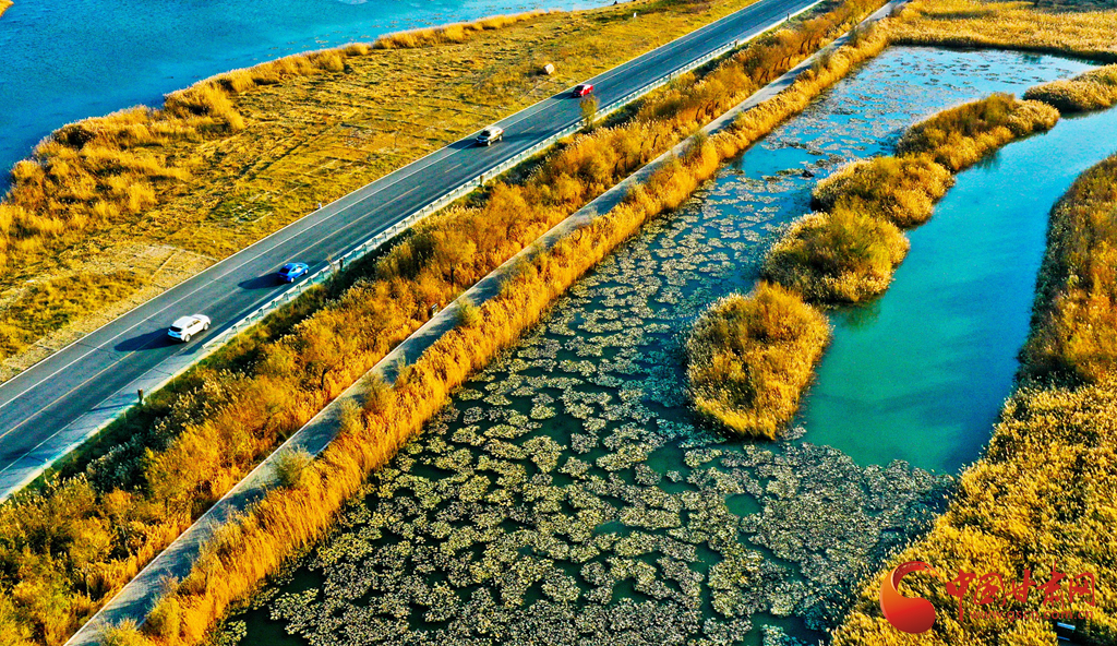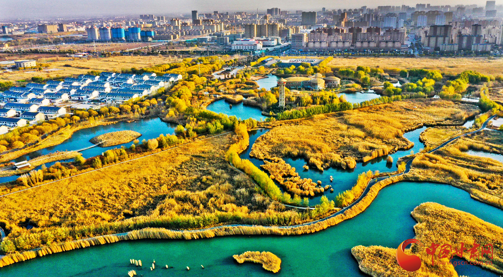 11月7日,濕地環繞下的張掖市甘州區,展現出了一幅人與自然和諧共生的美好畫卷。