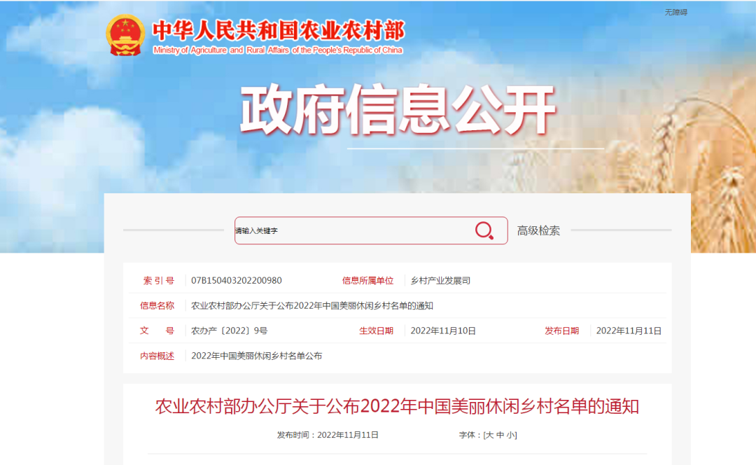 農業農村部14日發布,為拓展農業多種功能,促進鄉村產業高質量發展,農業農村部開展了2022年中國美麗休閑鄉村推介,貫通產加銷,融合農文旅,持續推進農村一、二、三產業融合發展。