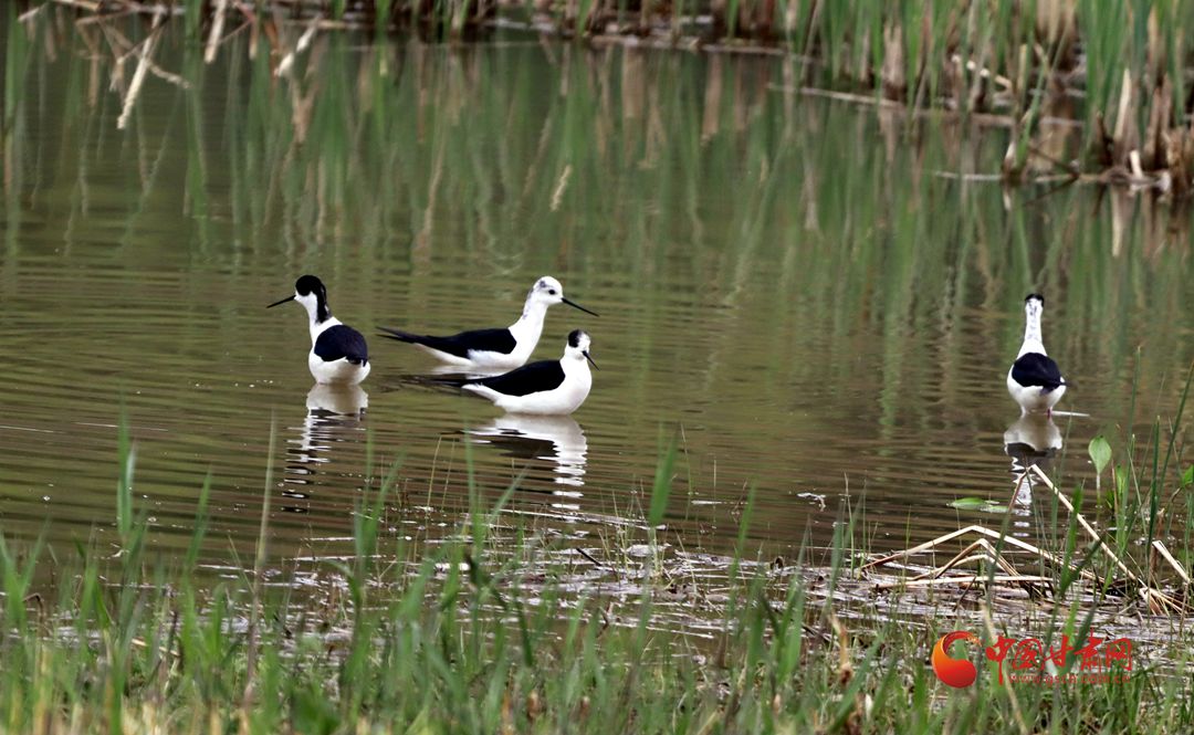 據(jù)了解,這種鳥叫黑翅長(zhǎng)腳鷸,是候鳥的一種,春季于4月初至5月初遷來中國北方繁殖地,秋季于9-10月離開北方繁殖地往南遷徙。黑翅長(zhǎng)腳鷸是一種涉禽(水鳥中的一類),喜歡成群結(jié)隊(duì),淺水而居,以小昆蟲、小魚、蝌蚪等為食。它還是一種惹人喜愛的水鳥,它的嘴細(xì)長(zhǎng)而筆直,體白翅黑,對(duì)比分明,身姿綽約、體態(tài)修長(zhǎng),被譽(yù)為“鳥中模特”或者“長(zhǎng)腿超模”。