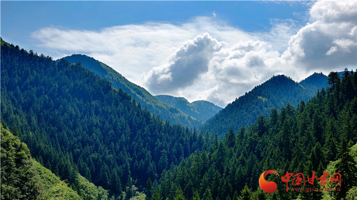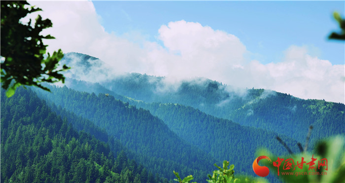 興隆山藍天白云遇蒼翠