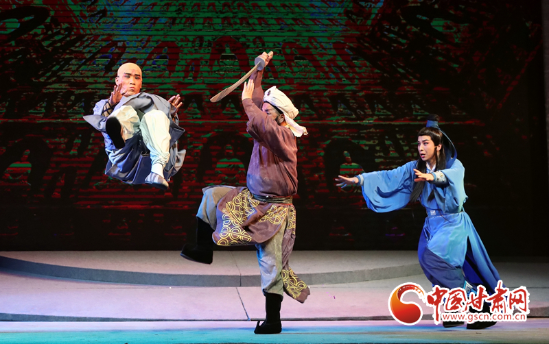 隴劇《敦煌》以回鶻族公主格麗莎的命運(yùn)軌跡為結(jié)構(gòu)框架和發(fā)展脈絡(luò),描繪了一幅炎黃子孫在血與火的洗禮中,保護(hù)中華民族文化的宏偉畫卷,充分詮釋了敦煌文化“美人之美”“美美與共”的開放胸襟,“止戈為武”“協(xié)和萬邦”的和平思想,“和為貴”“和而不同”的東方智慧以及“自強(qiáng)不息”的奮斗精神、“舍生取義”犧牲精神。