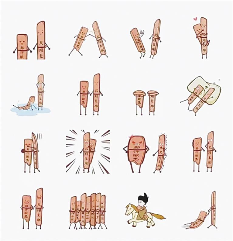 此次上線的簡牘表情包盡可能保留了簡牘原貌,一個(gè)個(gè)簡牘版簡簡和牘牘表情包長著小短腿和小短手,或擊掌或歡呼或大哭,動(dòng)態(tài)十足,16組表情包各表其意,在萌趣中體現(xiàn)歷史文化,展現(xiàn)簡牘的魅力。