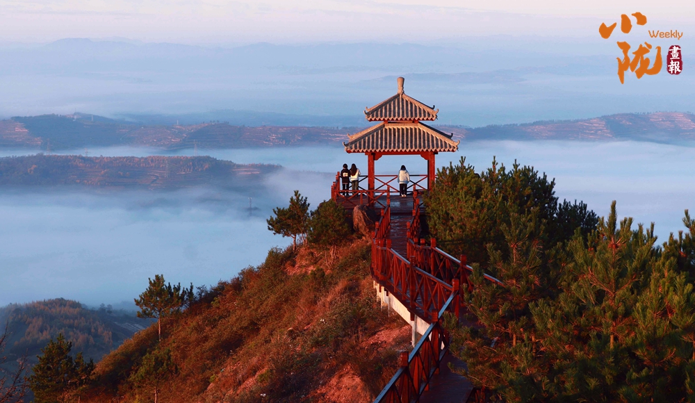 俯瞰云華山頂峰,丹巖如霞,薄霧在峰林之間時而緩緩流動,時而回旋舒展,時而像海浪一樣傾瀉而下,讓人如臨飄渺仙境。