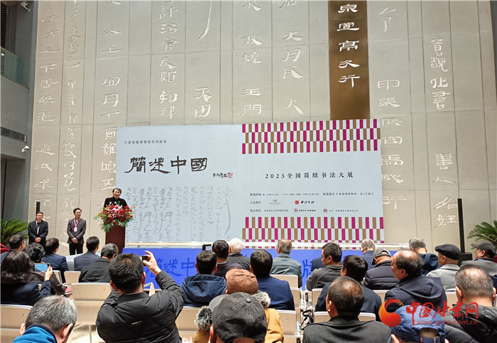 中國甘肅網12月2日訊(西北角·中國甘肅網記者 宋芳科 )12月2日,“簡述中國——2023全國簡牘書法大展”在甘肅簡牘博物館開展。中國文聯副主席、西泠印社副社長兼秘書長陳振濂認為,簡牘的科研在甘肅不僅僅是學術還有藝術,這樣的活動如果能堅持辦,在全國形成品牌效應,將是甘肅省對當代書法的重要貢獻。