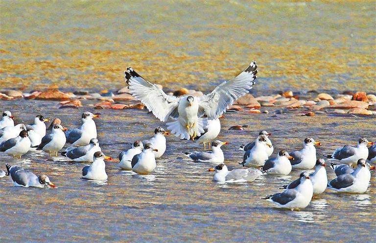 冬日的蘭州市黃河岸邊候鳥翔集,嬉戲的候鳥和流動的河水交織成一幅美麗自然的和諧畫卷。 新甘肅·甘肅日報記者 丁凱 田蹊