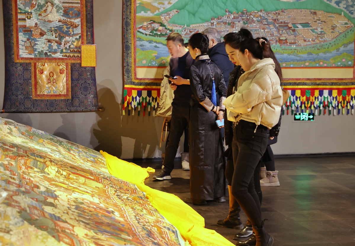 12月26日,北京,觀眾在皇城藝術館參觀《甘肅甘南非遺文化藝術展》。中國日報記者 姜東 攝