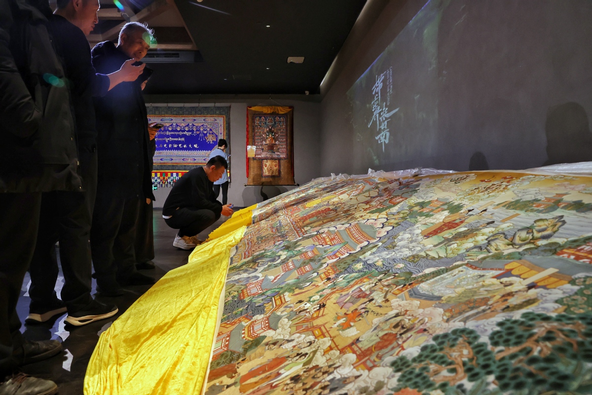 (記者 姜東)2023年12月26日,北京,觀眾在皇城藝術館參觀《甘肅甘南非遺文化藝術展》。近日,《甘肅甘南非遺文化藝術展》在北京皇城藝術館開展。此次展覽主要展示了甘南藏族自治州非物質文化遺產藝術作品《拉卜楞文化歷史彩繪藝術大觀》《藏族書法瑰寶》及甘南拉卜楞文創產品。
