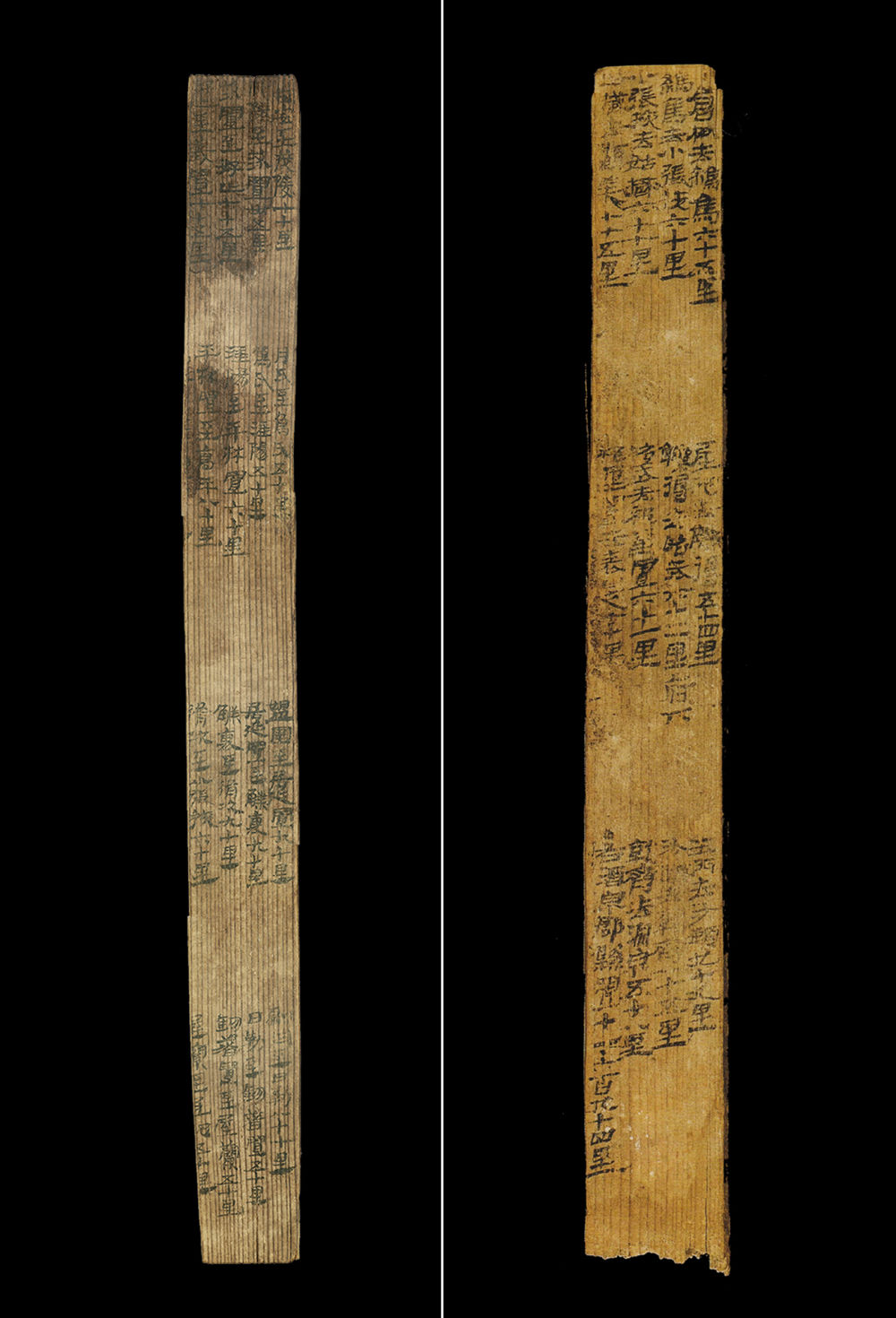 拼版照片:漢簡《居延里程簡》(左圖)和《懸泉里程簡》。1974年出土于今內蒙古自治區額濟納旗破城子遺址的“居延里程簡”,詳細記載了從漢代長安出發至張掖郡20個驛置名稱及間隔里程。1990年出土于敦煌懸泉置遺址的“懸泉里程簡”,記載了河西走廊地區武威郡到敦煌郡12個驛置的詳細信息。新華社發(甘肅簡牘博物館供圖)
