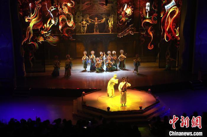 2月15日晚,游客在觀(guān)看全球首部洞窟式沉浸體驗(yàn)劇《樂(lè)動(dòng)敦煌》。張曉亮 攝