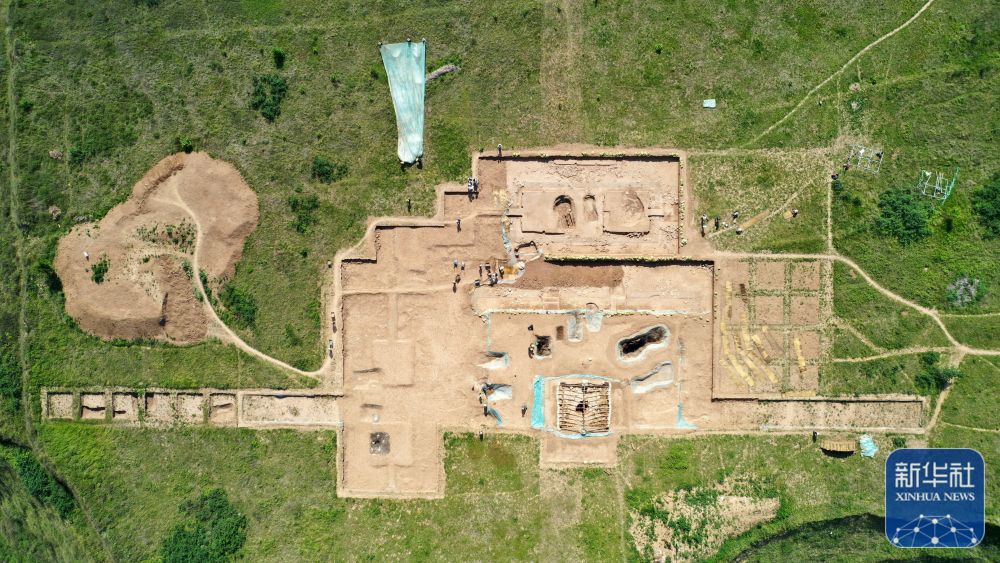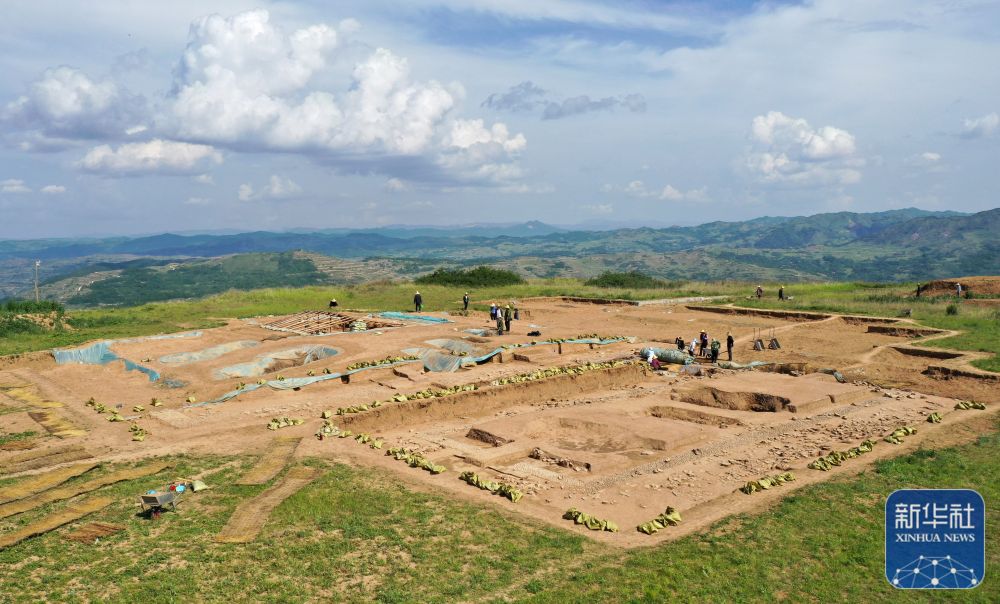 這是2022年6月10日拍攝的甘肅省隴南市禮縣四角坪遺址考古發(fā)掘現(xiàn)場(無人機照片)。新華社記者 郎兵兵 攝