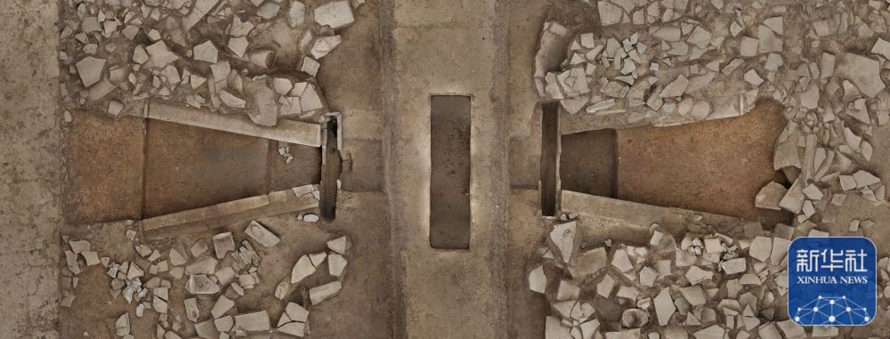 這是甘肅省隴南市禮縣四角坪遺址的排水設(shè)施(2024年1月8日攝,無人機照片)。新華社發(fā)(四角坪遺址考古隊供圖)