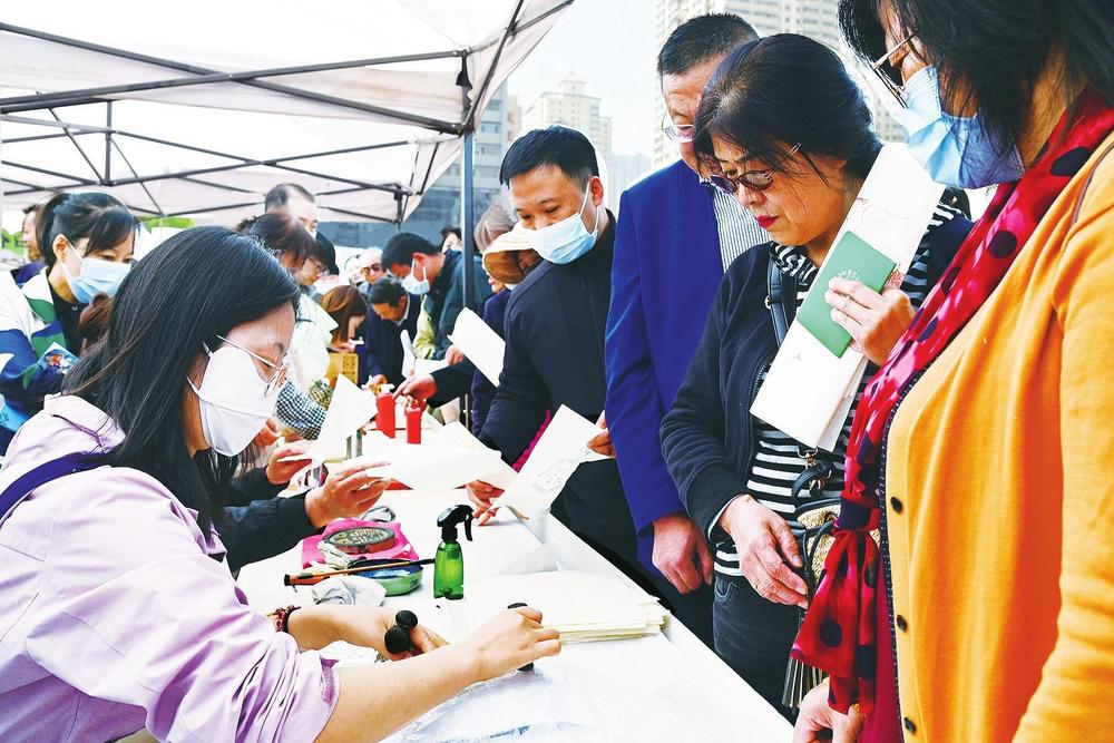 活動(dòng)現(xiàn)場(chǎng),甘肅省圖書館的工作人員帶領(lǐng)讀者體驗(yàn)傳拓之美。 新甘肅·甘肅經(jīng)濟(jì)日?qǐng)?bào)記者 瞿娟 攝