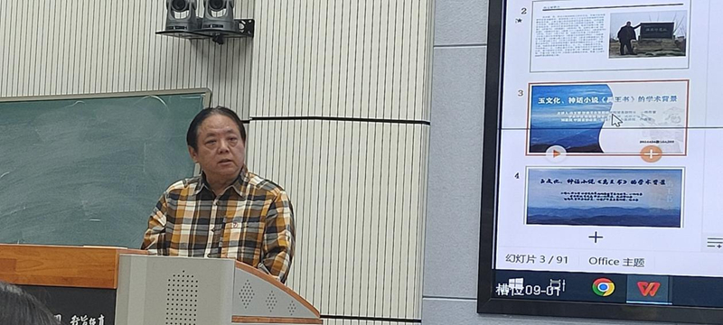 馮玉雷一直認(rèn)認(rèn)真真,埋頭干事。他心中有一個非常宏大的目標(biāo),向著這個目標(biāo)行進過程中,腳踏實地。前幾年他在西北師范大學(xué)首開公選課《中國玉文化》,把玉文化作為專門的一門課來講,具有開拓性。玉文化作為一門學(xué)科,在全國各大高校此前還沒有先例,馮玉雷先生做了一件非常有意義的事情。這次講座對我非常有啟發(fā)。從這門課的內(nèi)涵來講,其實又是一個延續(xù):對傳統(tǒng)文化也好,考古文化也好,對甘肅省乃至整個中華大地,從玉文化開始出現(xiàn),發(fā)展到現(xiàn)在,就是一種延續(xù)。玉和玉器至堅至柔,至圣至潔,卻默默無言,但是它們告訴了我們很多以前不知道或者沒有意識到的信息,從重見天光的那一刻起,有無數(shù)信息在源源不斷的釋放,就看人們?nèi)绾卫斫猓绾谓庾x。如果不研究、發(fā)現(xiàn)這些玉器的內(nèi)涵,那還是相當(dāng)于某種意義上的沉睡。馮玉雷創(chuàng)作小說,研究玉文化,還組織十幾次考察活動,國內(nèi)的有些大家都參與,這像不像流動的學(xué)術(shù)討論會?他的長篇小說《禹王書》出版剛剛一個月,據(jù)我所知,“玉文化、神話小說《禹王書》的學(xué)術(shù)背景”講座是首次分享,他把研究成果、創(chuàng)作成果第一時間通過課堂與同學(xué)們分享,我仿佛看到他帶著學(xué)生勇往直前,義無反顧地向前走著,這本身就是玉文化精神的傳承和發(fā)揚!我感覺到馮玉雷《禹王書》的思緒上下翻飛,縱橫馳騁,騰躍五千年。小說中有非常核心的價值內(nèi)涵,就是玉文化本身所具有的、深深進入到我們民族根脈中的文化內(nèi)涵,同時,又有就是對文學(xué)的一種激發(fā)。小說中的神話人物以及他們之間的交流、故事、語言,還有那些玉器,都非常神奇。可以預(yù)想,這本書的后延性非常長遠,希望玉文化班的同學(xué)能夠在馮玉雷老師帶領(lǐng)下,傳承發(fā)揚玉文化,完成從璞玉到玉器的轉(zhuǎn)化!