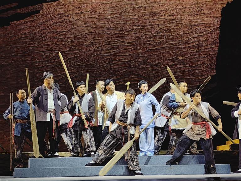 中國甘肅網(wǎng)5月21日訊 據(jù)蘭州晚報報道(記者 高宏梅 文/圖)酣暢淋漓的“花兒”唱出了黃河兒女的人間悲喜,韻味濃厚的“嘛簧”一唱眾幫,隴劇戲曲張力無限,“羊皮筏子賽軍艦”的熱血故事成就走心之作……5月19日晚,國家藝術(shù)基金資助項(xiàng)目原創(chuàng)隴劇《大河?xùn)|流》在黃河劇院成功首演,隴劇“梅花獎”甘當(dāng)配角,“青春力量”首挑大梁,出新出彩的優(yōu)異表現(xiàn)贏得滿堂彩。