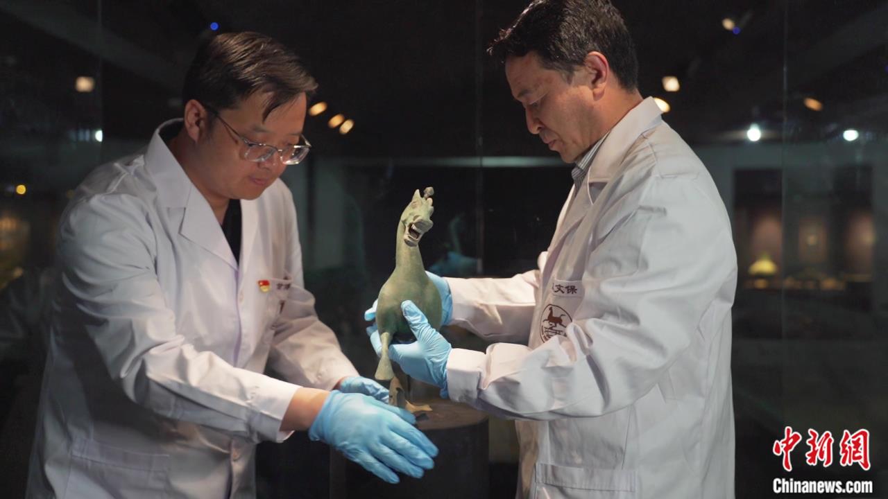 甘肅省博物館文物保護修復中心主任、副研究館員張東(左)與同事在工作中。受訪者 供圖
