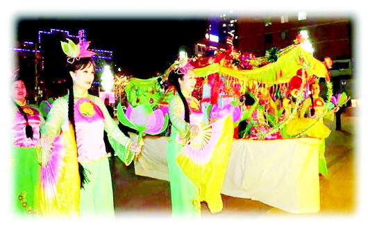 因著葫蘆河的哺育,也有了歷代風雅文人、賣漿者流或言志或抒情的傳承,秦安蠟花舞這項民間舞蹈藝術在千年的時光里熠熠生輝,散發出迷人的光彩。直至今日,表演時人們都是左手托舉花燈,右手持彩綢折扇,且花燈內裝有點燃的蠟燭。
