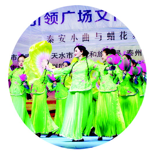 郭遂世是郭嘉鎮郭嘉村的農民,現已80多歲的她,是王芳學練蠟花舞的開門導師。1956年底,表演完回到家里的郭遂世接到公社的通知,讓村里的蠟花舞去縣上參加文藝調演。在她的記憶中,當時表演她們穿的是紅衣裳綠褲子,既鮮艷,又惹人,表演的地方是在廣場的一個大臺子上,當時人山人海。新中國成立初期的秦安縣文藝尚處于百廢待興,但蠟花舞的柔美和飄逸,還是讓春節調演耳目一新。就像是絢爛的煙花,蠟花舞因為高光的表演,作為秦安文藝的代表又被選中參加天水地區的文藝調演,一同選中的,還有氣勢恢宏的獅舞。這次表演,秦安蠟花舞一炮打響。