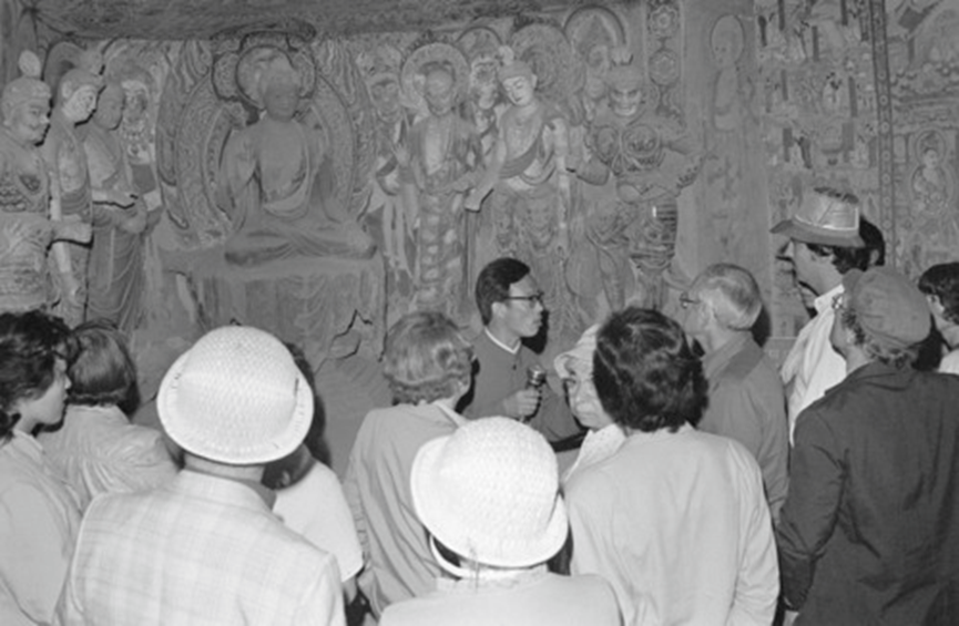舉世聞名的文化寶庫和藝術明珠——敦煌莫高窟吸引了亞、歐、美三大洲的旅游者。新華社記者李生才攝(1986年5月18日發)