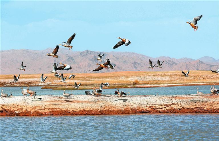 近年來,經(jīng)過當(dāng)?shù)赜嘘P(guān)部門和甘肅鹽池灣國家級(jí)自然保護(hù)區(qū)的有效治理和保護(hù),野生動(dòng)物種群逐漸增多。每年遷徙至此繁衍生息的鳥類種群和數(shù)量不斷增加,時(shí)常上演萬鳥翔集的壯觀場景,勾勒出一幅和諧壯美的大自然畫卷。