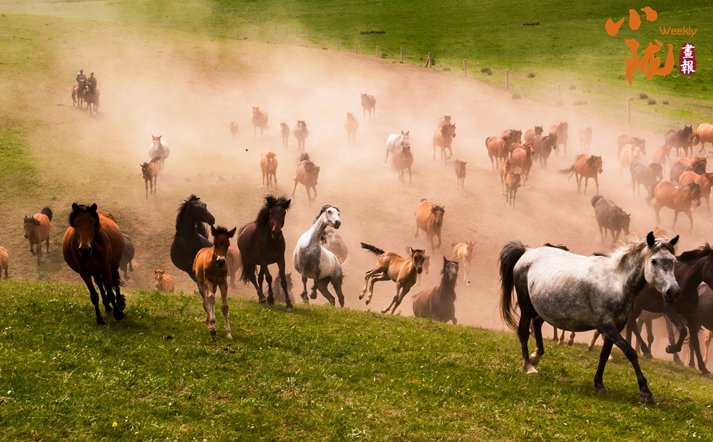 這里有比塞罕壩更壯觀的萬馬奔騰。藍(lán)天白云下,一匹匹雄健的駿馬在疾風(fēng)中奔馳,從一望無際的草場(chǎng)上呼嘯而過,長鬃飛揚(yáng),浩浩蕩蕩。