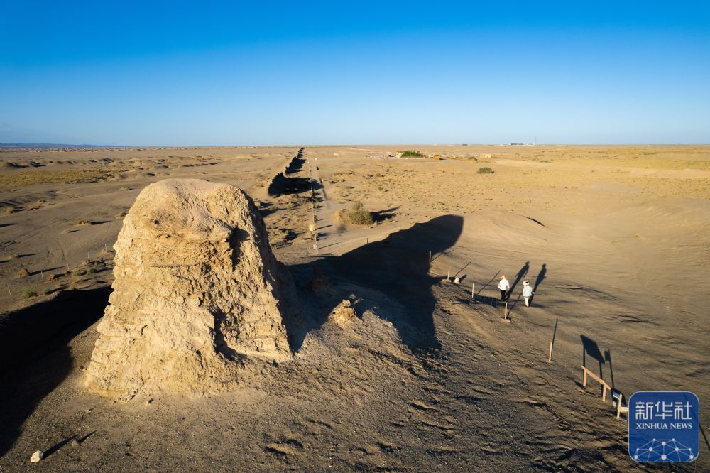 玉門關外,大漠戈壁,漢長城遺址巍然屹立,訴說著歷史上的邊塞風云和絲路滄桑。