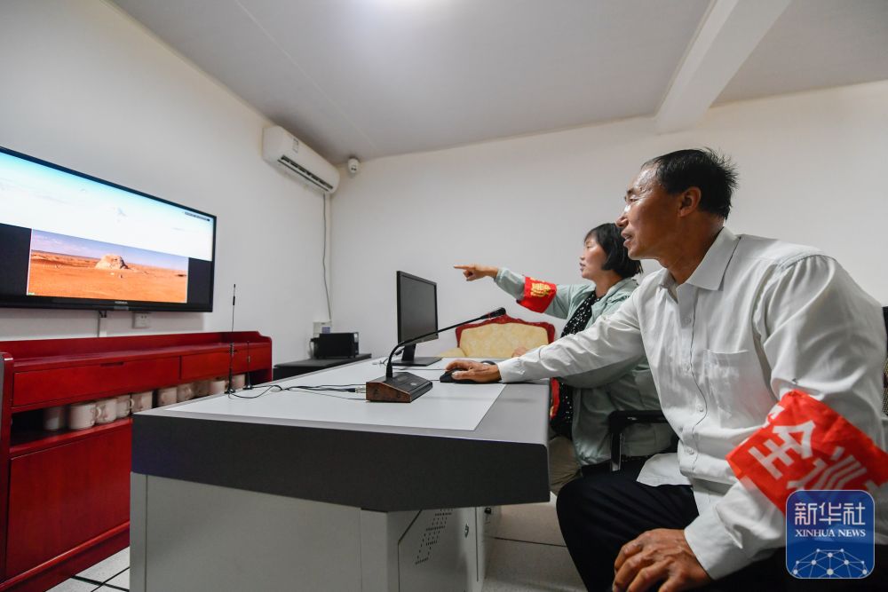 ↑7月16日,張吉全和妻子聞春瑜通過監控巡查漢長城遺址。
