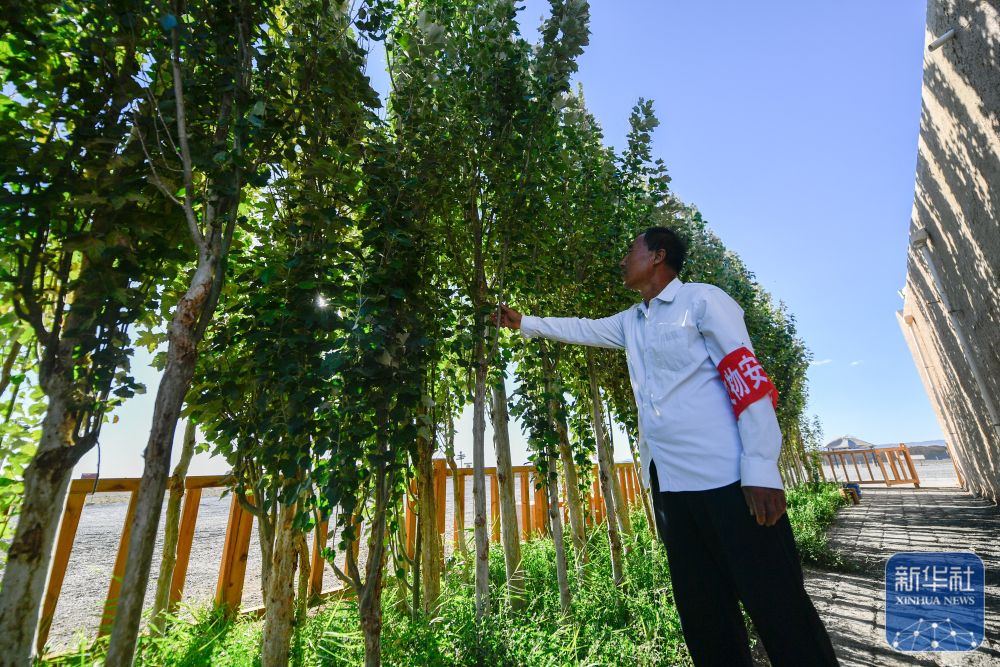 ↑7月16日,張吉全撫摸著親手栽植的白楊樹。