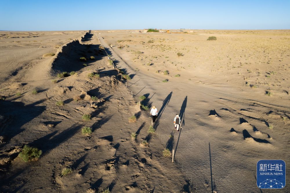 ↑這是張吉全和聞春瑜夫婦負責巡護的一段漢長城遺址(7月16日攝,無人機照片)。