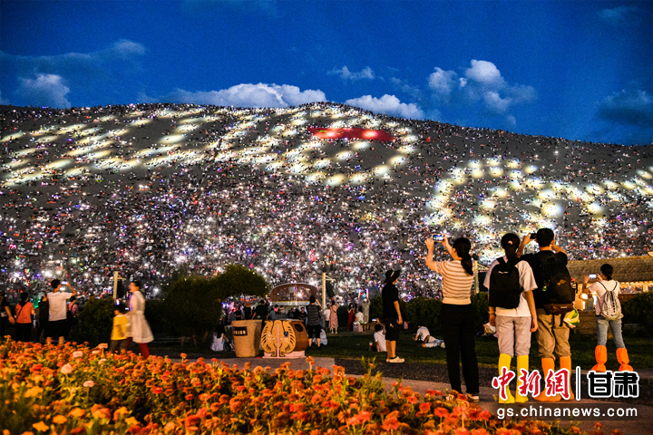 盛夏7月,每當夜幕降臨后,甘肅省敦煌市鳴沙山月牙泉景區被精心布置的燈光點亮,上萬名游客手機的燈光與天空中的繁星交相輝映,營造出一種夢幻般的浪漫氛圍。