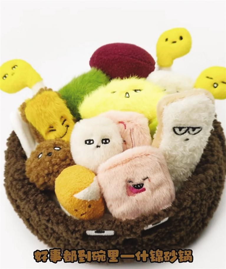 記者看到,“麻辣燙”和“砂鍋”毛絨玩具花束有多個(gè)單品,模擬了丸子、蟹排、年糕、香菇等菜品。而且每款都有自己的名字——嘻嘻西蘭花、香香香菇、黏黏年糕、哇哇菜、謝謝蟹排、玩去吧丸子。可愛有趣的毛絨玩具再次走紅網(wǎng)絡(luò),成為不少“大朋友”的必入文創(chuàng)單品。連日來,這款單品引發(fā)近20萬人涌入天貓旗艦店搶購,“麻辣燙”幾度售罄。甘肅省博物館文創(chuàng)中心負(fù)責(zé)人崔又心介紹,“麻辣燙”火了之后,天貓店客服每天都會收到來自消費(fèi)者“求補(bǔ)貨”留言。