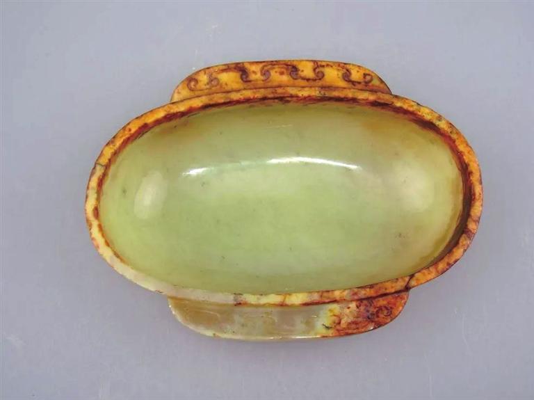 羽觴,多美妙風雅的名稱,它的基本形制是扁橢圓,弧形壁,淺腹平底,餅形足或高足,口緣兩側各有一個半月形耳或方形耳。這種形制始于春秋戰國,是由橢杯、舟等演變而來,盛行于秦漢至魏晉南北朝,唐代以后便很少見到。其材質有漆木、青銅、金、銀、玉、陶等,其中玉耳杯由諸侯王、列侯等身份地位比較高的人使用,漆耳杯使用者范圍較廣泛,上至帝王諸侯,下至一般貴族均可使用。