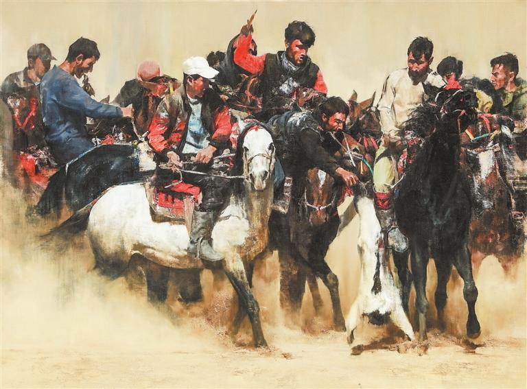非遺——塔吉克叼羊 (油畫) 張國鋒 (本版文圖由甘肅省美術家協會提供)