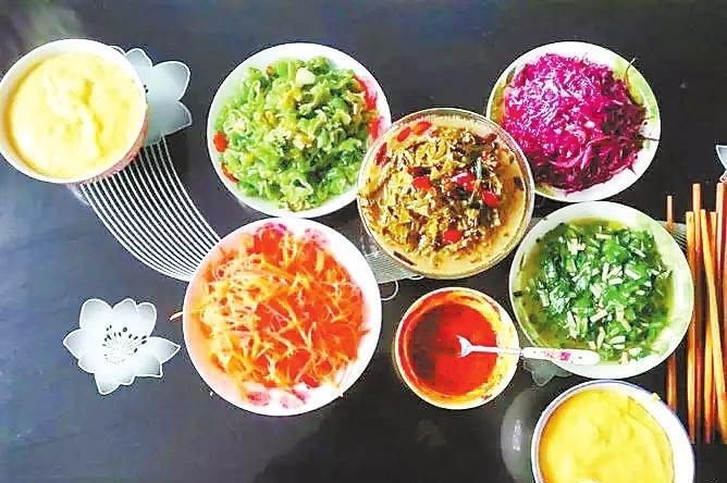 百人百心病,百人百口味?,F在的人吃馓飯,對菜品的要求越來越高了,除了酸菜,人們大多還會調一些涼菜,或炒一些菜,蘿卜的,肉丁的,山野菜的,虎皮辣子的,滿滿地擺上一桌子,如錦上添花,令人食欲大增。