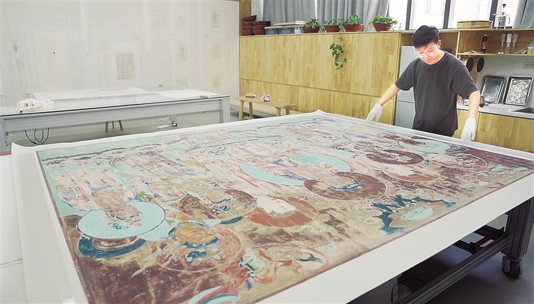 “我來這里7年了,感覺也是一瞬間的事。”畢業于吉林藝術學院裝裱專業的徐喆,2017年入職敦煌研究院,“第一次來敦煌,被這里的壁畫所吸引所震撼,能夠在這里當一名裱畫師,也是很幸運的。”