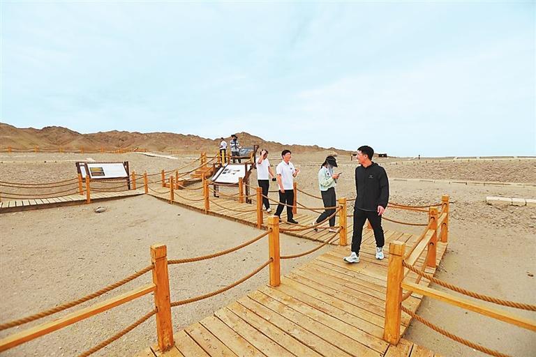 為了解到更全面詳細的知識,我們請來講解員一同前往。講解員介紹道,這里自漢武帝挫敗匈奴后,除了中原疆域外,西域還有烏孫國等30多國,由于通往京城長安路途遙遠,人煙稀少,又缺乏食物補給。為克服這些困難,同時為便利同西方各國的經濟文化交流溝通,促進共同繁榮,及時傳達政令,西漢除設立了河西四郡外,又設置了大小多處郵驛設施,懸泉置便是其中規模最大的一處。