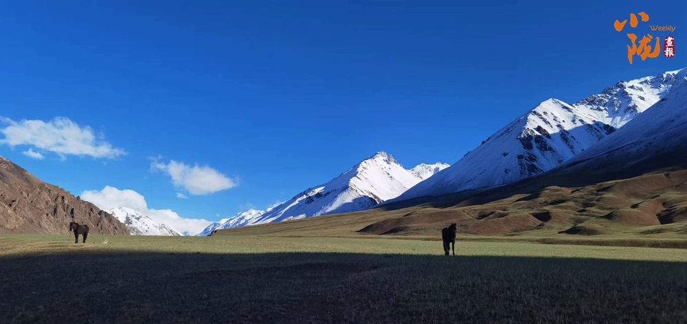 初秋,草香撲面而來,綠草漸被秋風染黃,與雪山、藍天繪成一幅層次鮮明的風景畫。